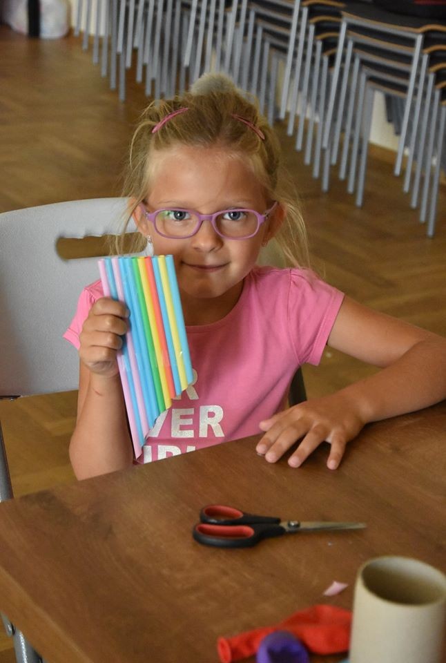 Kolejny dzień muzykanta za nami. Uczestnicy zapoznali się z różnymi instrumentami takimi jak obój, gitara, ukulele, dzwonki, i flet prosty. Zadaniem na dzisiaj było również stworzenie fletni pana oraz grzechotek. Na koniec wspólnie zagraliśmy na swoich instrumentach.